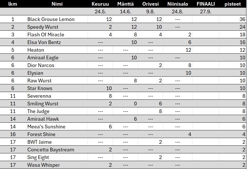 Kylmäverisille (finaalissa etusijalla Suomessa syntyneet = ensirekisteröidyt) tai lämminverisille suunnattu kilpailusarja (kausikilpailu), jonka säännöistä ja kilpailuihin liittyvistä päätöksistä ja muutoksista vastaa Pohjois-Hämeen Hippos ry. Vuonna 2025 kilpailu on sekä lämminverisille että kylmäverisille.